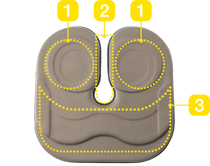 U자형 디자인으로 엉덩이의 중심부로부터 뒤까지, 불쾌한 압박 없이 안심하고 깊숙하게 확실히 앉을 수 있습니다.
