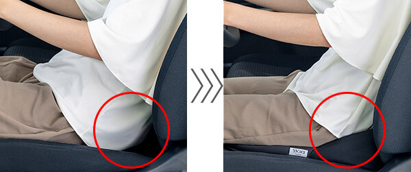 허리와 시트 사이의 틈을 채우고 골반을 안정시킵니다. 또, 골반이 뒤로 쓰러지는 움직임을 억제해, 자연스러운 자세를 유지해 허리에의 부담을 경감합니다.
